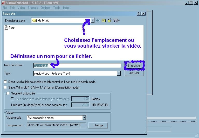 - C:Program FilesVirtualDub Mod sous Windows XP (ou antérieur)